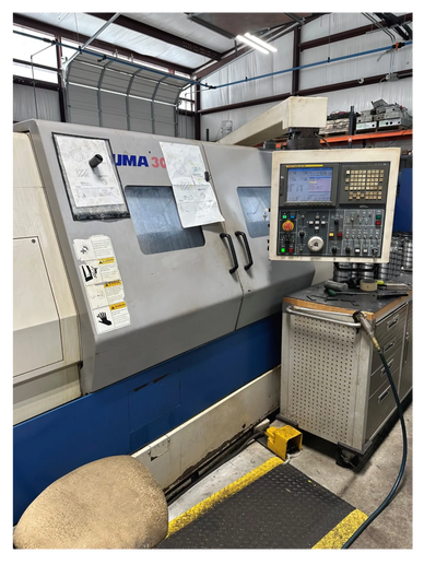 30HP; Spindle output; Fanuc 21iTB control; 12" Chuck; distance between centers 52.8"; 3500 RPM spindle; Steady rest 10" Dia. capacity Repeatability .0001"